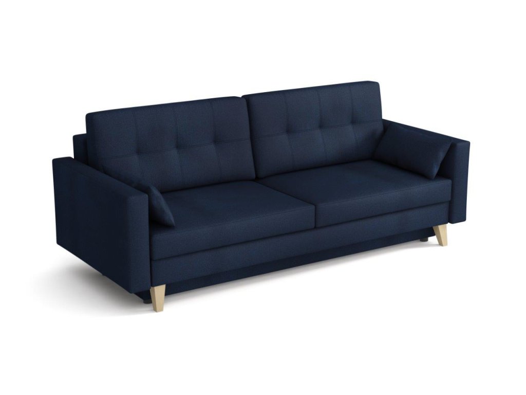Pohovka Marina je krásným elegantním kouskem s nádechem RETRO designu a výborně zapadne do každého interiéru. Retro design podtrhují zešikmené dřevěné nohy a látkové knoflíky na opěrce. Pohovka je rozkládací a samozřejmostí je i nepostradatelný úložný prostor. Jednoduchým rozložením pomocí automatu vznikne dostatečně prostorné lůžko občasnému přespání Vaší návštěvy. Výpň sedáku tvoří vlnité pružiny v kombinaci s pružinami bonell a kvalitní PUR pěnou. Pohovka je celočalouněná, takže ji můžete umístit i do prostoru. Výborně se hodí do obývacího pokoje, do pracovny či pokoje pro hosty. Pohovku nabízíme v několika trendy barvách. Vyobrazené dopňky a dekorace nejsou v ceně.