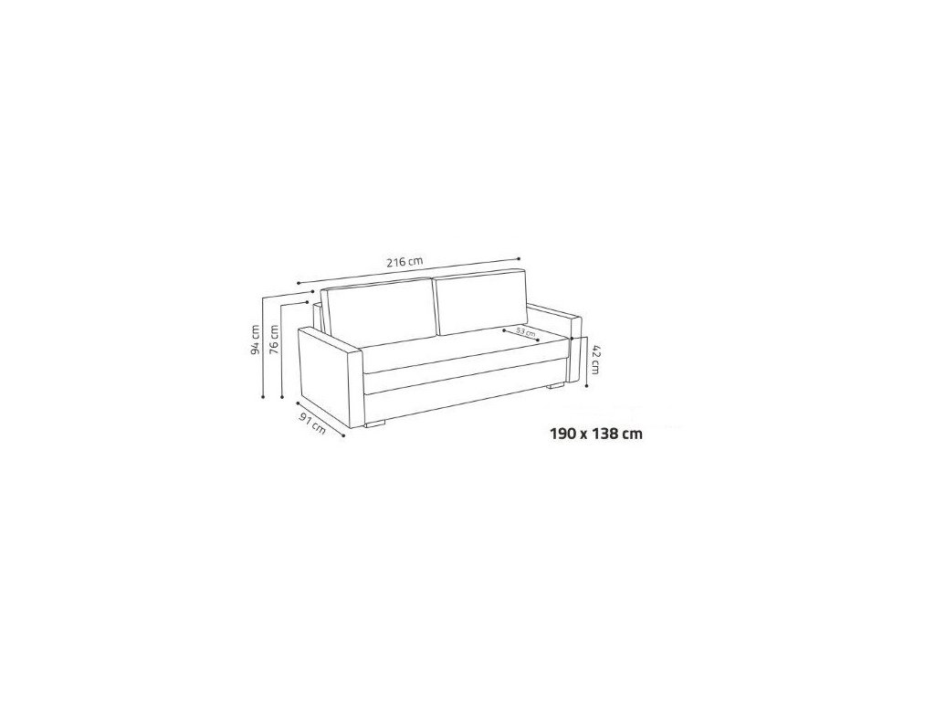 šířka: 210 cm | výška: 104 cm | hloubka: 100 cm Elegantní trojsedák, který svým vzhledem a provedením zaručuje luxus a pohodlí. Sedačka je rozkládací, plocha po rozložení činí...