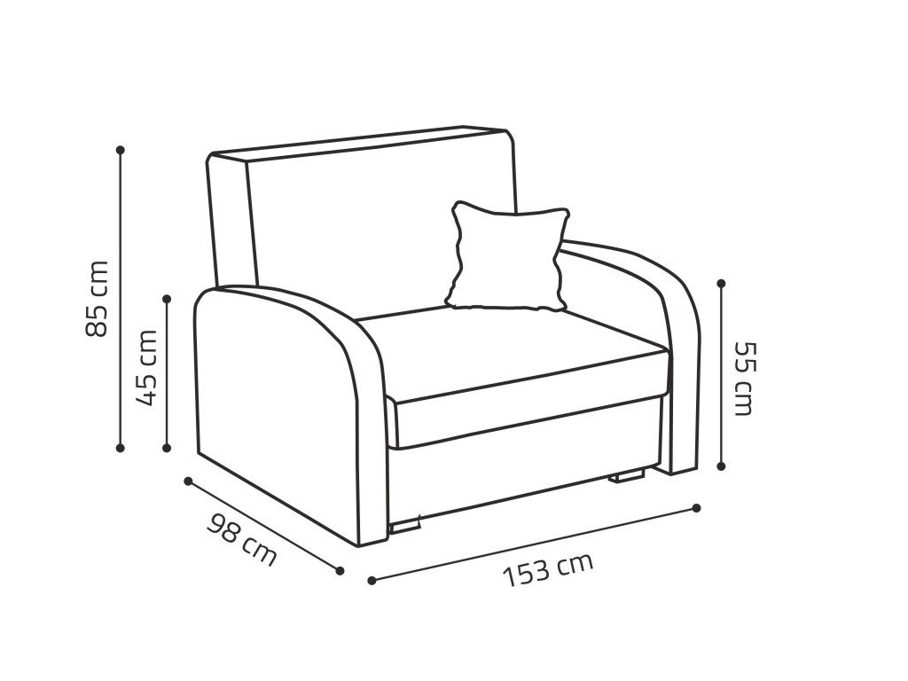 Sedák je vyplněn kombinací vlnitých pružin a PUR pěny, což zajišťuje komfortní sezení i ležení. Součástí je také praktický úložný prostor, ideální pro uložení lůžkovin nebo dalších věcí. V ceně křesla je 1 dekorační polštář. Ostatní vyobrazené dekorace nejsou v ceně.