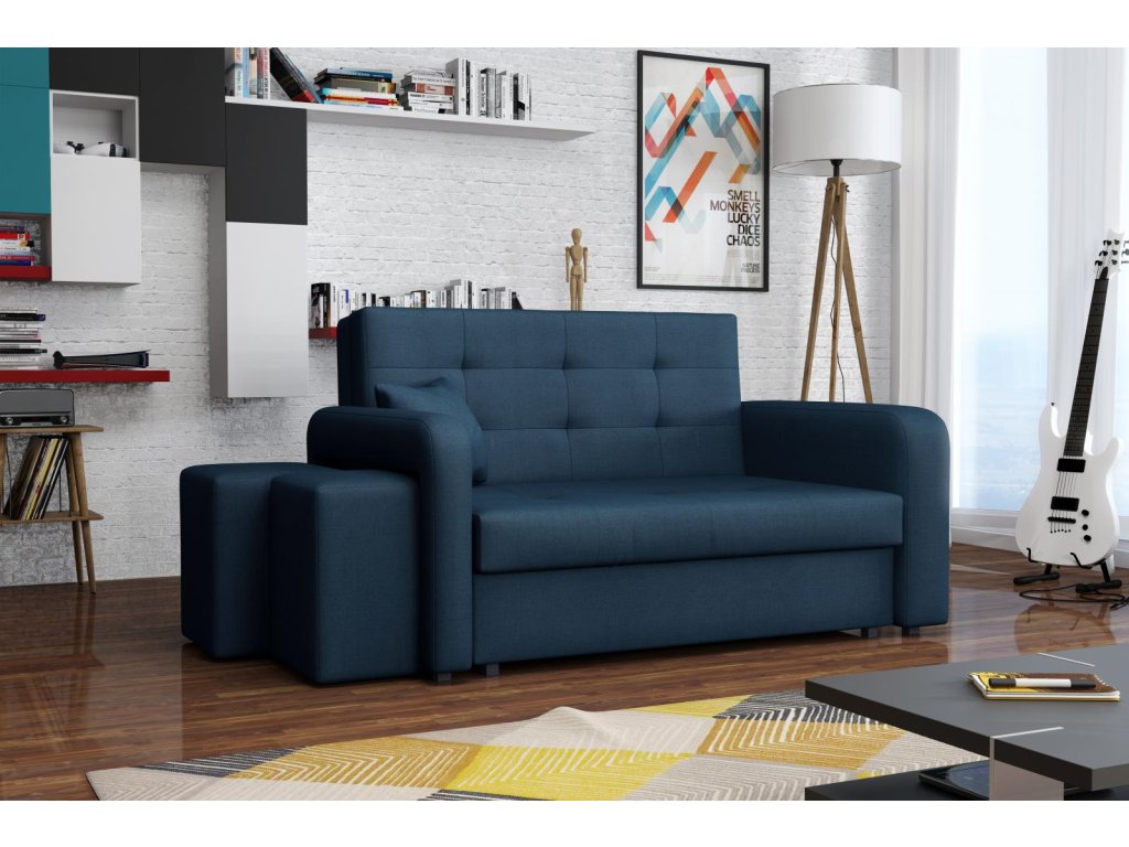Rozkládací pohovka Vivian je díky svým rozměrům vhodná i do menších pokojů. Své uplatnění najde nejen v obývacím pokoji, ale také v dětském, studentském, nebo hostinském pokoji. Jednoduchým rozložením pomocí automatu, získáte lůžko k příležitostnému přespání Vaší návštěvy. Výplň sedáku tvoří vlnité pružiny v kombinaci s PUR pěnou. Pohovka je potažena kvalitní látkou a nabízíme ji v několika trendy odstínech. Pohovka disponuje i nepostradatelným úložným prostorem, který využijete např. na deku a polštář. V ceně pohovky je 1 dekorační polštář a 2 taburety, které jsou důmyslně uložené v područi pohovky. Taburety můžety využít k sezení, nebo k podepření nohou při odpočinku. Ostatní vyobrazené dekorace nejsou v ceně. Vyobrazené dopňky a dekorace nejsou v ceně.