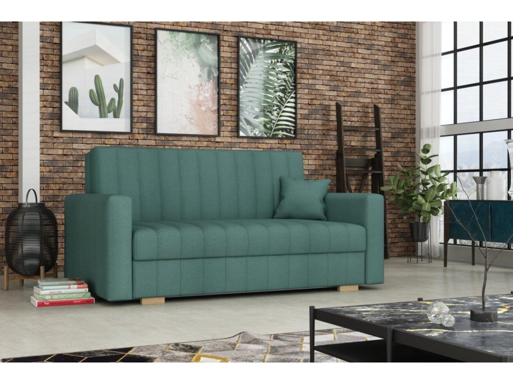 Rozkládací pohovka Vivian je díky svým rozměrům vhodná i do menších pokojů. Své uplatnění najde nejen v obývacím pokoji, ale také v dětském, studentském, nebo hostinském pokoji. Jednoduchým rozložením pomocí automatu, získáte lůžko k příležitostnému přespání Vaší návštěvy. Výplň sedáku tvoří vlnité pružiny v kombinaci s PUR pěnou. Pohovka je potažena kvalitní látkou a nabízíme ji v několika trendy odstínech. Pohovka disponuje i nepostradatelným úložným prostorem, který využijete např. na deku a polštář. V ceně pohovky je 1 dekorační polštář. Ostatní vyobrazené dekorace nejsou v ceně.