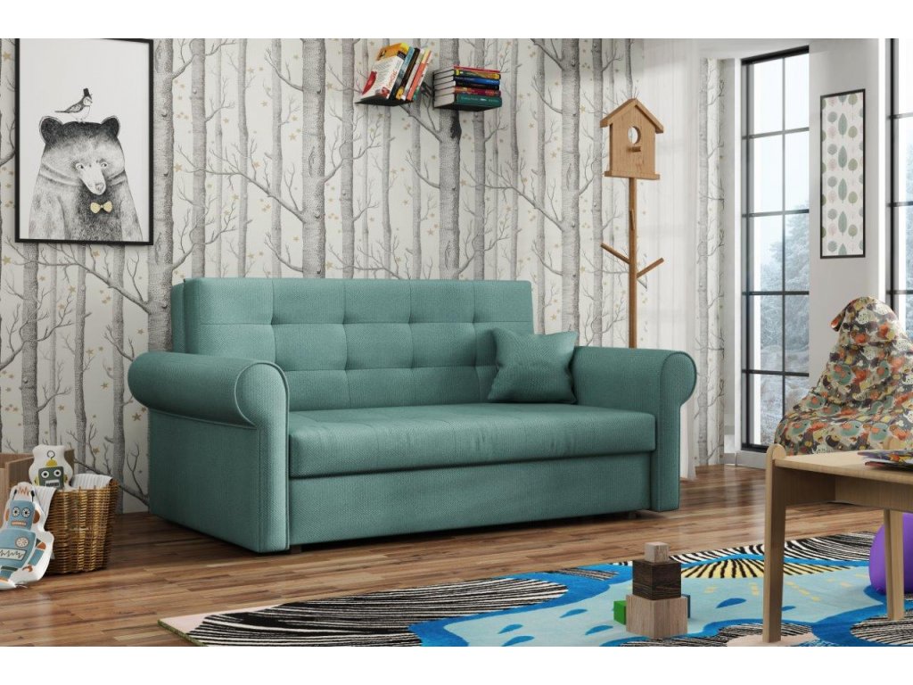 Rozkládací pohovka Vivian je díky svým rozměrům vhodná i do menších pokojů. Své uplatnění najde nejen v obývacím pokoji, ale také v dětském, studentském, nebo hostinském pokoji. Jednoduchým rozložením pomocí automatu, získáte lůžko k příležitostnému přespání Vaší návštěvy. Výplň sedáku tvoří vlnité pružiny v kombinaci s PUR pěnou. Pohovka je potažena kvalitní látkou a nabízíme ji v několika trendy odstínech. Pohovka disponuje i nepostradatelným úložným prostorem, který využijete např. na deku a polštář. V ceně pohovky je 1 dekorační polštář. Ostatní vyobrazené dekorace nejsou v ceně.