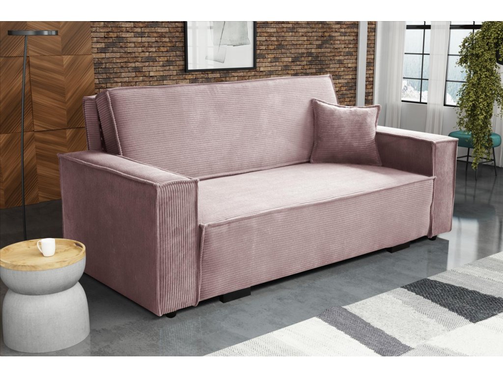 Pohovka je vhodná do dětského, studentského, nebo hostinského pokoje. Jednoduchým rozložením pomocí automatu, získáte lůžko k příležitostnému přespání Vaší návštěvy, nebo kamaráda Vašich dětí. Výplň sedáku tvoří vlnité pružiny v kombinaci s PUR pěnou. Pohovka je potažena kvalitní látkou s výběrem několika trendy odstínů. Pohovka disponuje i nepostradatelným úložným prostorem, který využijete např. na deku a polštář. Ostatní vyobrazené doplňky a dekorace nejsou v ceně.