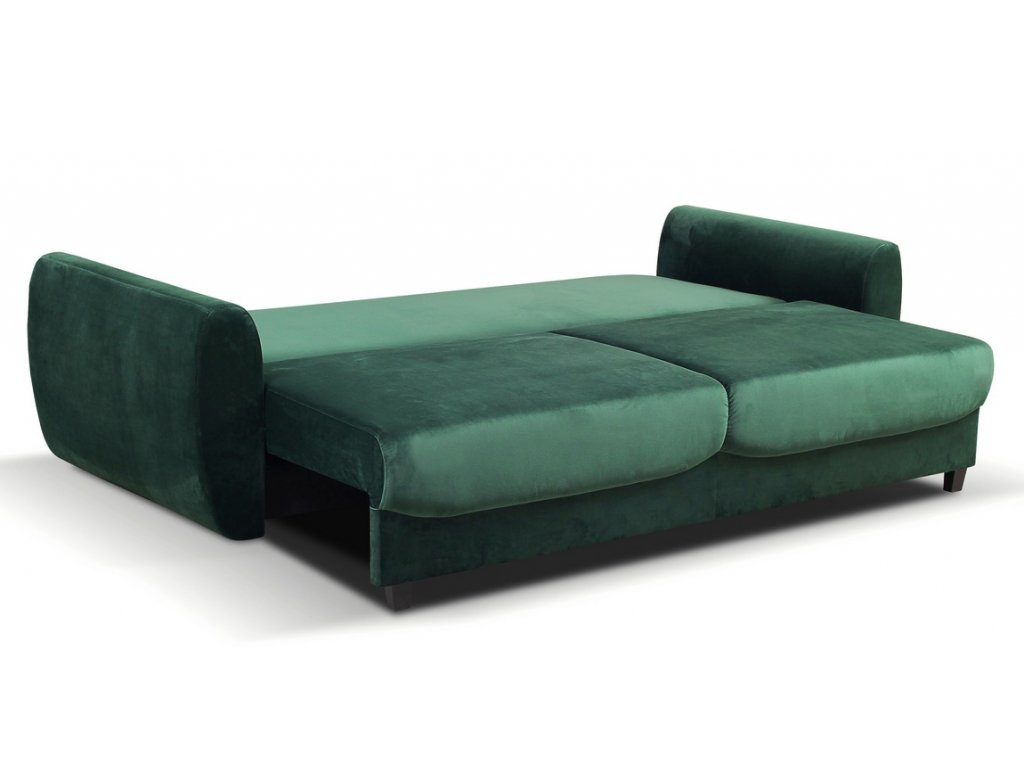 Praktická celočalouněná pohovka. Netradiční a velmi moderní vzhled. Pohovka obsahuje úložný prostor a prostor na příležitostní spaní. Po rozložení je spací plocha 200 x 147 cm. Rozklad je snadný pomocí automatu a sklopením zadní části. Pohodlné sezení zaručují vlnovcové a profilované pružiny spolu s visoceelastickou PUR pěnou, opěrné polštáře jsou na volno. Nožky jsou dřevěné v barvě wenge. Barevné provedení - látka Riviera 38.