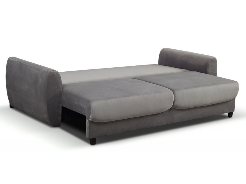 Praktická celočalouněná pohovka. Netradiční a velmi moderní vzhled. Pohovka obsahuje úložný prostor a prostor na příležitostní spaní. Po rozložení je spací plocha 200 x 147 cm. Rozklad je snadný pomocí automatu a sklopením zadní části. Pohodlné sezení zaručují vlnovcové a profilované pružiny spolu s visoceelastickou PUR pěnou, opěrné polštáře jsou na volno. Nožky jsou dřevěné v barvě wenge. Barevné provedení - látka Riviera 81.