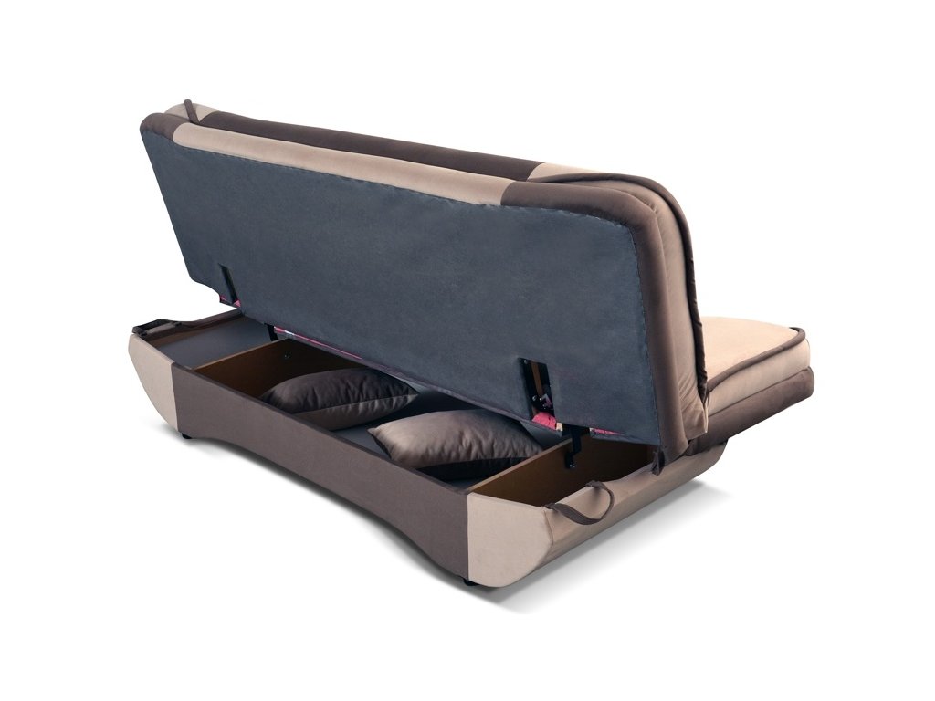 Praktická rozkládací pohovka. Elegantní a velmi moderní vzhled. Sedačka obsahuje úložný prostor a prostor na příležitostní spaní. Po rozložení je spací plocha 200 x 122 cm. Rozklad je snadný, jedná se o klasický klik-klak systém, přední část se nadzvedne, zadní potom sklopí. Úložný prostor se nachází pod sedákem. Polštářky nejsou v ceně, možnost objednání za příplatek. Pohodlné sezení zaručují bonelové pružiny spolu s PUR pěnou. Výška sedu je 45 cm a hloubka sedu je 56 cm. Nožky jsou z plastu. Možnost dokoupení křesla. Barevné provedení - látka Inari 91 a Inari 95. ( vzorky látek viz malý obrázek )