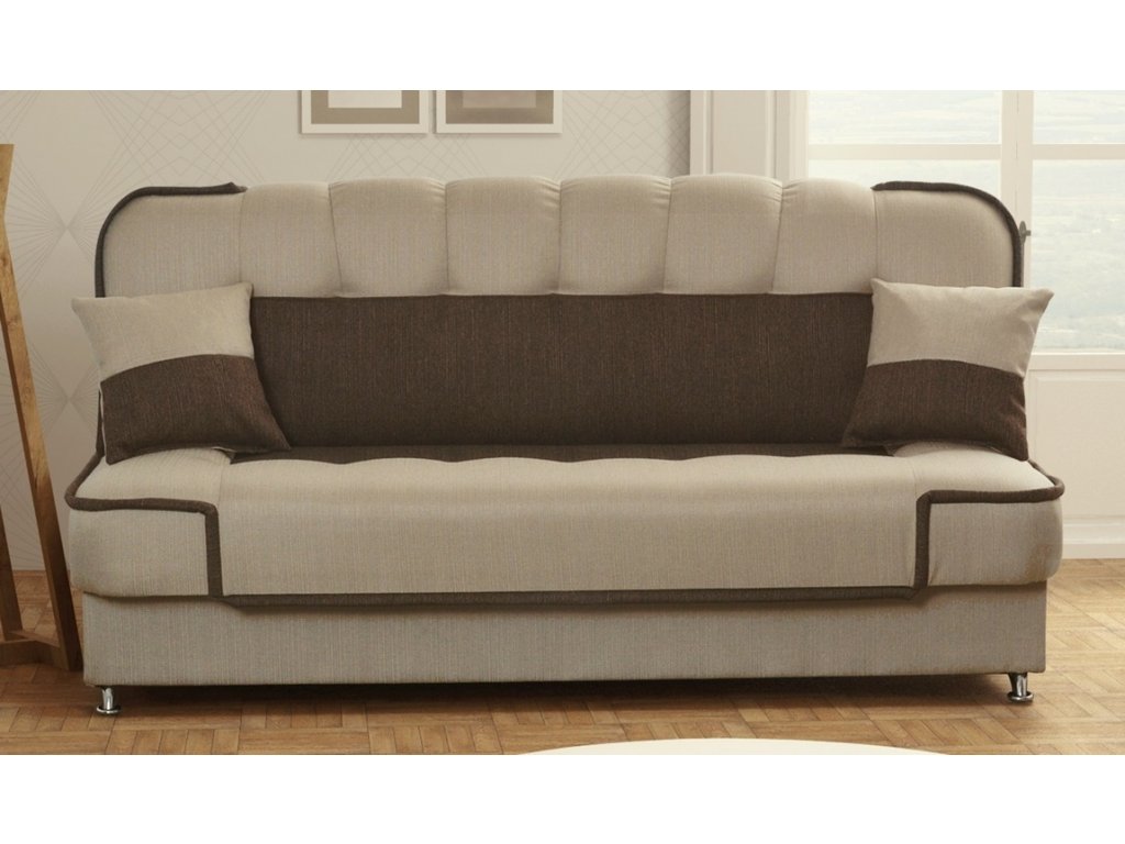 Praktická rozkládací pohovka. Elegantní a velmi moderní vzhled. Sedačka obsahuje úložný prostor a prostor na příležitostní spaní. Po rozložení je spací plocha 195 x 115 cm. Rozklad je snadný, jedná se o klasický klik-klak systém, přední část se nadzvedne, zadní potom sklopí. Úložný prostor se nachází pod sedákem. Polštářky nejsou v ceně, možnost objednání za příplatek. Pohodlné sezení zaručují bonelové pružiny spolu s PUR pěnou. Výška sedu je 48 cm. Možnost dokoupení křesla s úložným prostorem. Barevné provedení - látka Inari 28 a Inari 22. ( vzorky látek viz malý obrázek )