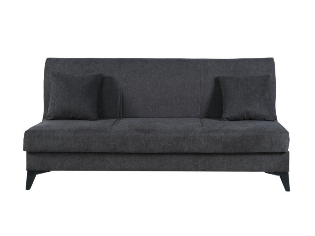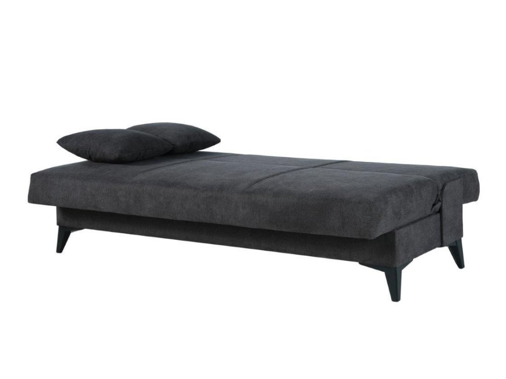 Tento model představuje velmi elegantní pohovku, kterou v případě potřeby můžete rozložit a využít pro příležitostné spaní nejen pro Vás, ale i vaše hosty. Dokonale se hodí do malých bytů a kanceláří. Díky jejím menším rozměrům a vysokým nožičkám bude interiér vypadat prostornější a vzdušnější. Pohodlná moderní pohovka s funkcí spaní bude praktickým kouskem do každého interiéru pro každodenní odpočinek. Za komfort sezení a spaní jsou zodpovědné pružiny Bonnell a vysoce kvalitní PUR pěna. Úložný prostor pod sedákem ocení každý majitel. Sedačka je čalouněna kvalitní potahovou látkou v tmavě šedé barvě a stojí na černých plastových nožičkách. Specifikace: spací plocha po rozložení: 182x108 cm, celkové rozměry: Š:78 /H:185/V:90 cm.