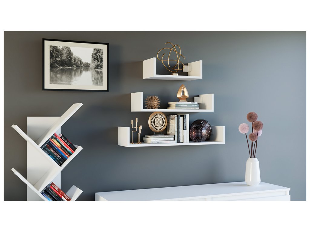 Nástěnná police MOBI bílá sada 3 ks