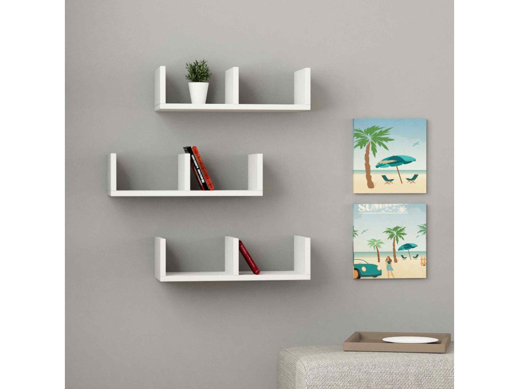 Set tří nástěnných polic JAREG přináší svěží a moderní design, který zaujme na první pohled. V bílé barvě a skandinávském stylu, tyto police jsou ideální volbou pro každý obývací pokoj, kde vytvoří útulnou a harmonickou atmosféru.