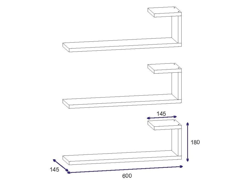 Závěsné police (3 ks) jsou vyrobeny z kvalitního lamina o tl.18 mm hraněné PVC páskou, odolného proti poškrábání v barvě matná bílá. Dodáváme v demontovaném stavu.Doplňkové parametry