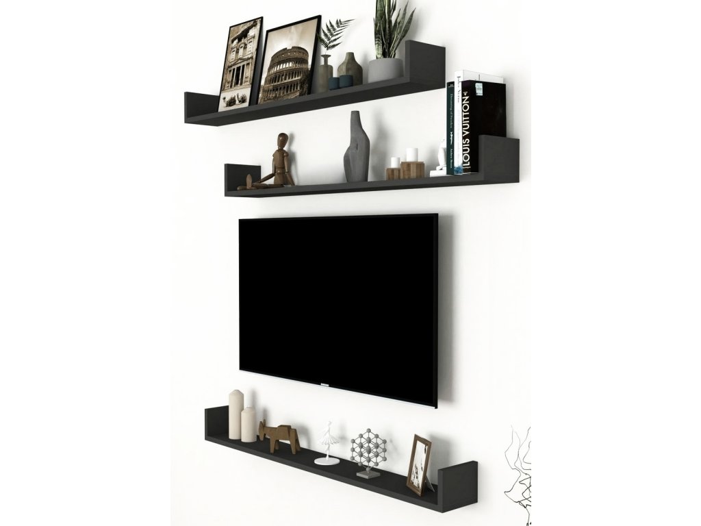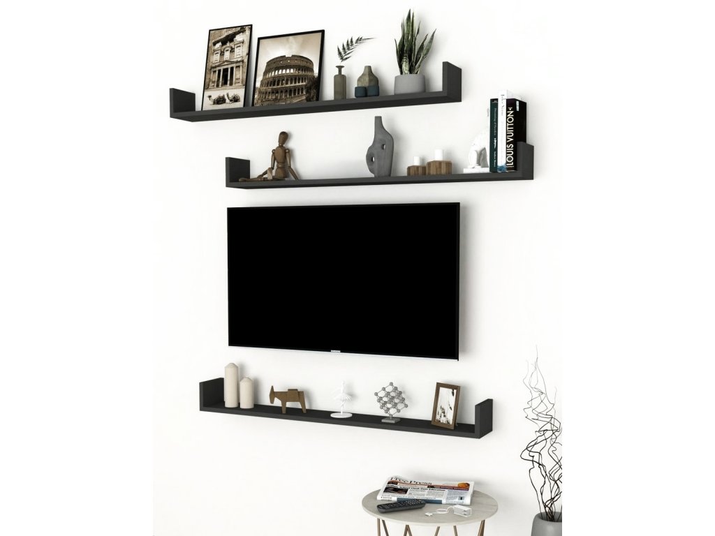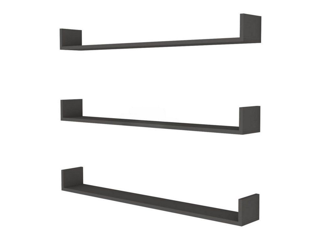 Sada závěsných polic (3 ks), které jsou vyrobeny z kvalitní desky LTD tl. 18 mm v barevném provedení antracit. Dodáváme v demontovaném stavu.Doplňkové parametry