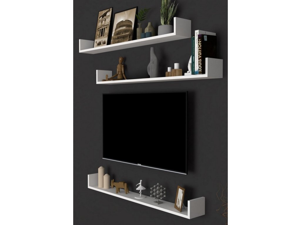 Sada závěsných polic (3 ks), které jsou vyrobeny z kvalitní desky LTD tl. 18 mm v barevném provedení bílá. Dodáváme v demontovaném stavu.Doplňkové parametry