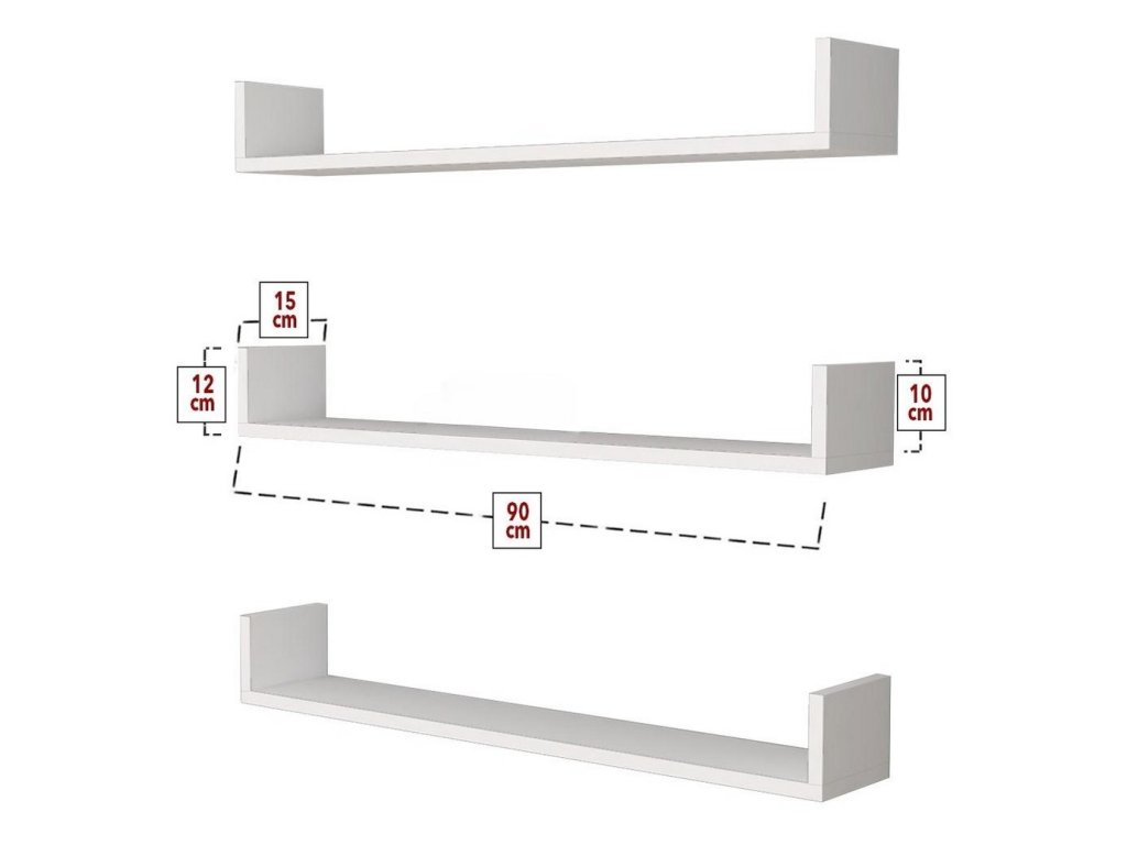 Sada závěsných polic (3 ks), které jsou vyrobeny z kvalitní desky LTD tl. 18 mm v barevném provedení bílá. Dodáváme v demontovaném stavu.Doplňkové parametry