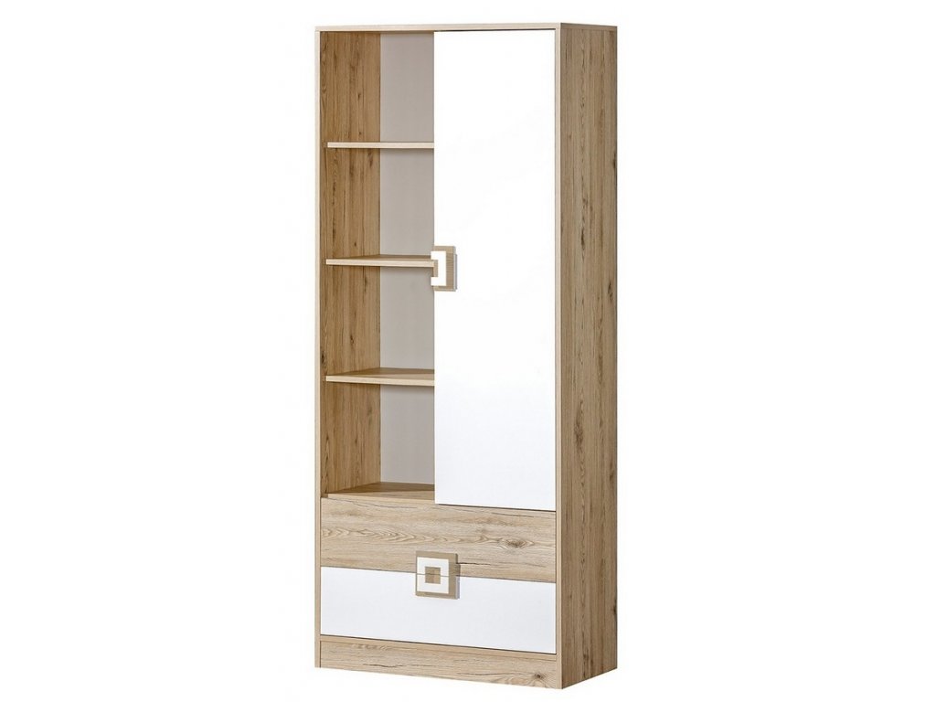 Kombinovaná skříň NIKO ze sektorové řady, která se vyznačuje netradičním zpracováním barev a originalitou úchytů. Tento styl nábytku zaujme každou mladší generaci. Skříň je vyrobena z kvalitní LTD desky hraněné ABS lištou. Korpus je v barvě dub jasný, dveře jsou v kombinaci barev bílá mat / dub jasný. Úchytky jsou v barevné kombinaci dub jasný / bílá. Uzavřená pravá část skříně obsahuje tři police a v dolní společné části jsou 2 zásuvky. Sektorový nábytek NIKO má široký výběr prvků, který Vám zaručí sestavit si dětský nebo studentský pokoj, ložnici či kancelář podle svých potřeb, přání a představ. Dodáváme v demontovaném stavu.Doplňkové parametry