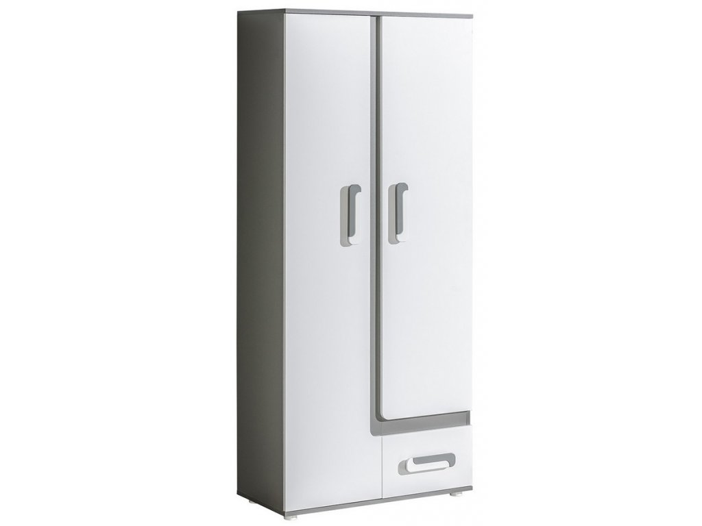 Dvoudveřová šatní skříň APETTITA ze sektorové řady, která se vyznačuje netradičním zpracováním barev a originalitou úchytů. Tento styl nábytku zaujme každou mladší generaci. Skříň je vyrobena z kvalitní LTD desky hraněné ABS lištou. Korpus je v barvě šedá antracit, dveře jsou bílé matné. Úchytky jsou v barevné kombinaci antracit/bílá. Uvnitř skříně jsou police, v dolní části je zásuvka. Sektorový nábytek APETTITA má široký výběr prvků, který Vám zaručí sestavit si dětský nebo studentský pokoj, ložnici či kancelář podle svých potřeb, přání a představ. Dodáváme v demontovaném stavu.Doplňkové parametry