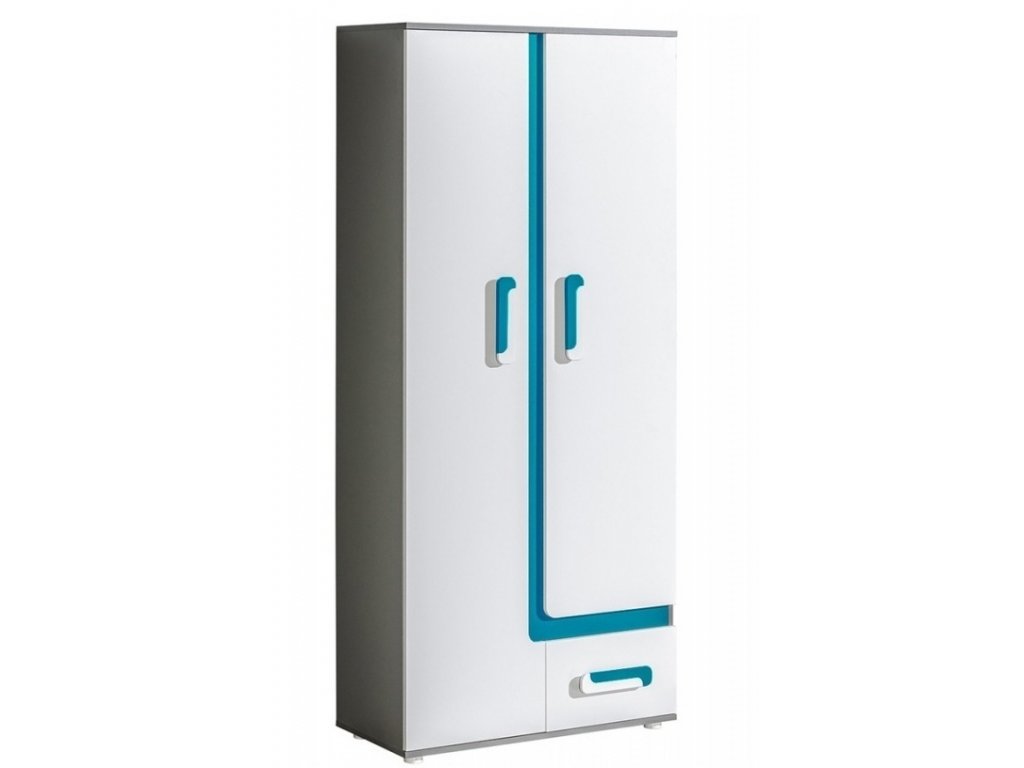 Dvoudveřová šatní skříň APETTITA ze sektorové řady, která se vyznačuje netradičním zpracováním barev a originalitou úchytů. Tento styl nábytku zaujme každou mladší generaci. Skříň je vyrobena z kvalitní LTD desky hraněné ABS lištou. Korpus je v barvě šedá antracit, dveře jsou bílé matné, doplňková barva je tyrkys. Úchytky jsou v barevné kombinaci tyrkys/bílá. Uvnitř skříně jsou police, v dolní části je zásuvka. Sektorový nábytek APETTITA má široký výběr prvků, který Vám zaručí sestavit si dětský nebo studentský pokoj, ložnici či kancelář podle svých potřeb, přání a představ. Dodáváme v demontovaném stavu.Doplňkové parametry