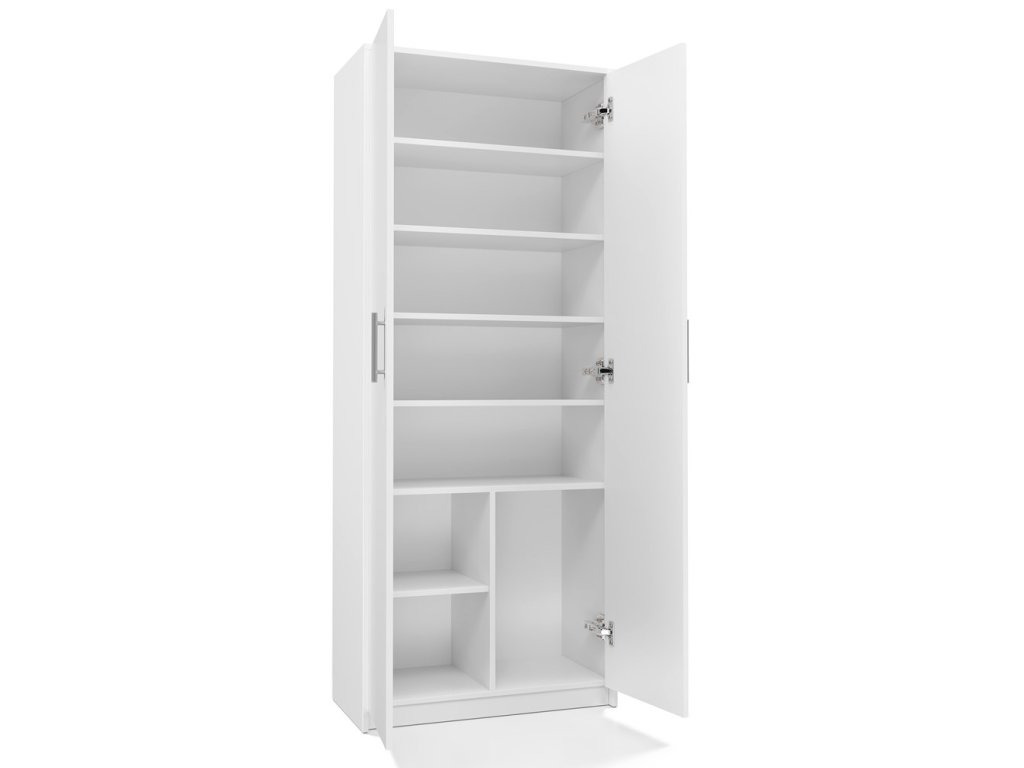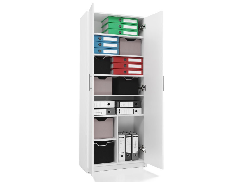 šířka: 72,3 cm | výška: 185,2 cm | hloubka: 33,5 cm Praktická skříň dvoudveřová s policemi vhodná na zakládaní šanonů, knih a jiných pracovních dokumentů. Korpus i dvířka jsou z...