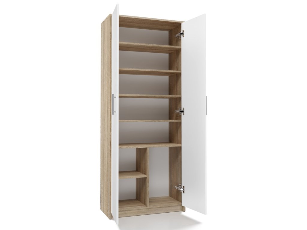 šířka: 79 cm | výška: 204 cm | hloubka: 41 cm Skříň policová čtyřdveřová se zásuvkou uprostřed je vyrobena z kvalitní odolné desky LTD s ABS hranami v barvě dub sonoma světlá....