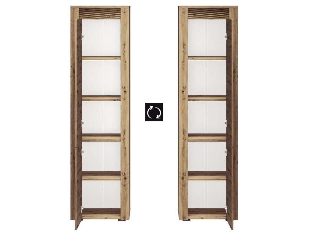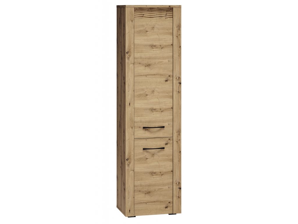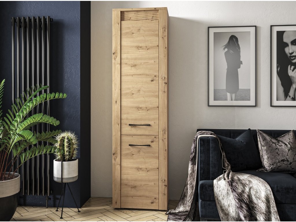 šířka: 55 cm | výška: 200 cm | hloubka: 40 cm Vitrína dvoudveřová je vyrobena z kvalitní desky LTD hraněné ABS páskou v barvě dub artisan. Dekorační riflovaná lišta nahoře je z...
