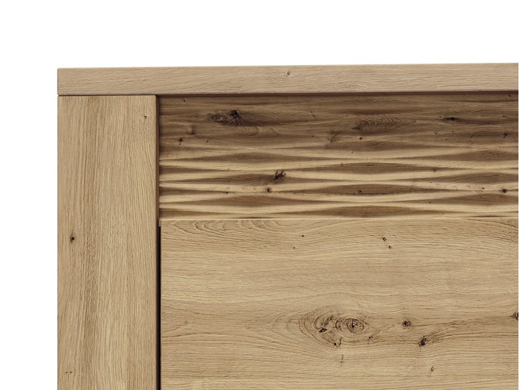 šířka: 165 cm | výška: 94 cm | hloubka: 40 cm Komoda čtyřdveřová se zásuvkou je vyrobena z kvalitní desky LTD hraněné ABS páskou v barvě dub artisan. Dekorační riflovaná lišta...