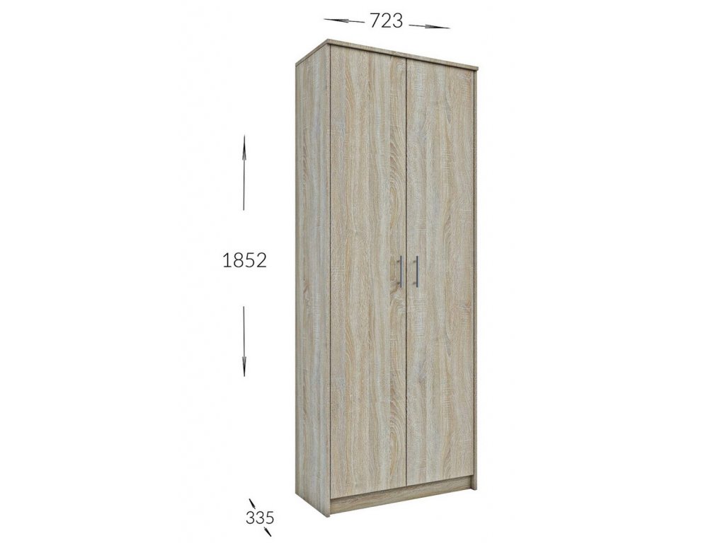 šířka: 74 cm | výška: 180 cm | hloubka: 35 cm Šatní skříň 2-dveřová s policemi. Korpus i dvířka jsou z kvalitního lamina. Lamino je odolné proti poškrábání, poškození, vlhkosti...