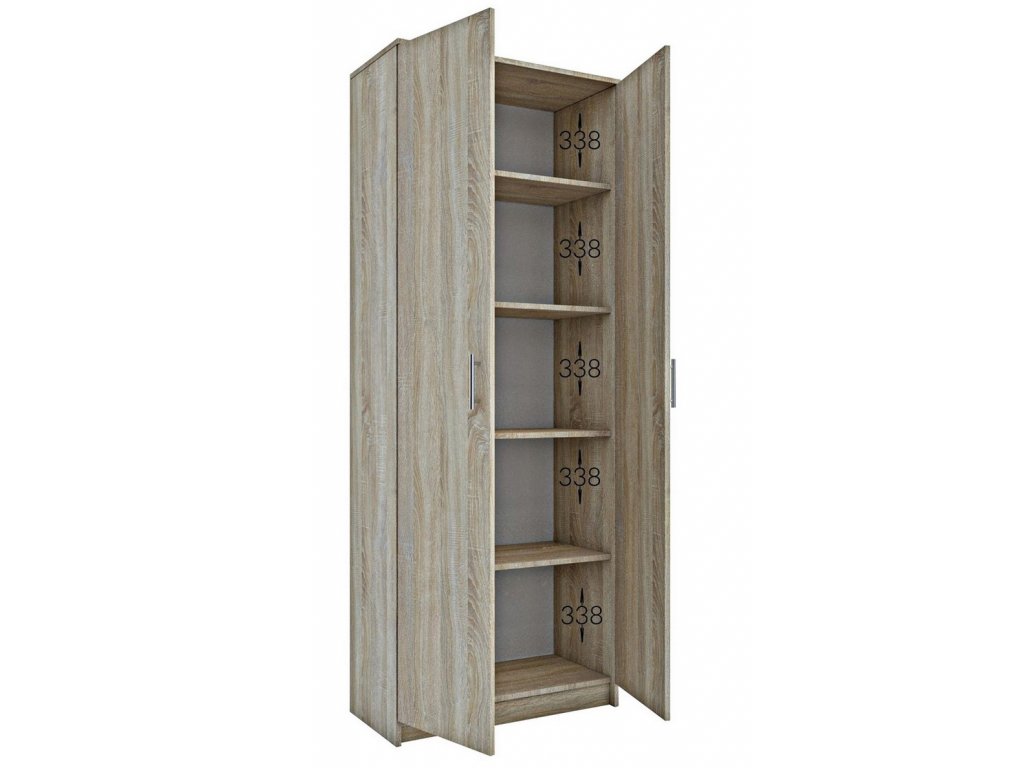 Praktická skříň dvoudveřová s policemi vhodná na zakládaní šanonů, knih a jiných pracovních dokumentů. Korpus i dvířka jsou z kvalitní LTD v barvě dub sonoma. Dodáváme v demontovaném stavu.Doplňkové parametry