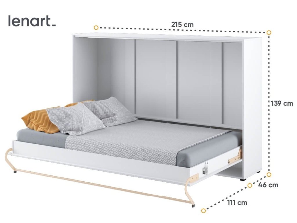 šířka: 211 cm | výška: 137 cm | hloubka: 46-148 cm Široká výklopná postel 120 bílá mat. Rozměry viz obrázek. Se sklápěcí postelí Vás už nebude trápit malý prostor Vaší...