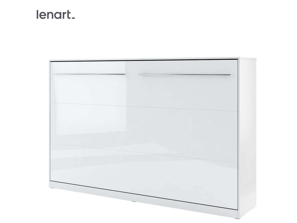 Široká výklopná postel 120 bílá lesk/bílá mat. Korpus nábytku je v matné bílé barvě, čelo nábytku je v bílém lesku. Rozměry viz obrázek. Každý kus nábytku v novém provedení Vám umožní dokonale zařídit menší ložnici nebo obývací, dětský či studentský pokoj. Se sklápěcí postelí Vás už nebude trápit malý prostor Vaší domácnosti. Díky stabilní konstrukci zaručuje pohodlný odpočinek. Bezpečnost je velmi důležitá a tak má naše sklápěcí postel mechanismus, kterým zablokujete postel proti samovolnému otevření. Při sklápění postele FUNKCE STOP zajistí bezpečné otevírání i zavírání. Tento výjimečný systém Vám umožní manipulaci pouze jedním prstem. Když je postel sklopená, vypadá jako běžná komoda. Vyklopením se vytáhne celá šířka postele. Při rozložení postele má hloubku 157 cm. Rám je nutno přišroubovat ke zdi, nosnost postele je 150 kg. Rošt postele je v ceně, matrace není součástí, je potřeba ji dokoupit. Doporučujeme velikost 120 x 200 x výšku do 18 cm.Po sklopení postele vzniká prostor pod postelí o výšce 20,4 cm. Nábytek je vyroben z kvalitního lamina s ABS hranou. Lamino je odolné proti poškrábání, poškození, vlhkosti a vysokým teplotám. Postel nabízíme v několika velikostech a barevných provedeních. Dodáváme v demontovaném stavu. Můžete si prohlédnout prezentační video, klikněte ZDE.Doplňkové parametry