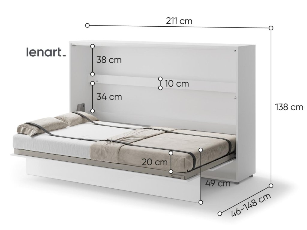 šířka: 131 cm | výška: 217 cm | hloubka: 46-228 cm Vysoká výklopná postel 120 bílá mat. Rozměry viz obrázek. Se sklápěcí postelí Vás už nebude trápit malý prostor Vaší...