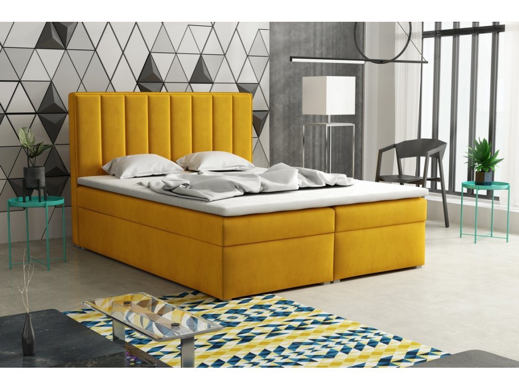 Elegantní kontinentální postel moderního vzhledu s vysokým čelem s dekoračním prošíváním. Postel se dodává zároveň s matrací - boxspring styl. Pevná konstrukce postele je potažena látkou v barvě dle Vašeho výběru. Na ní se nachází vysoká bonelová matrace potažena stejnou látkou. Na ní je druhá tenká matrace v celku vyrobena z kvalitní hrubé PUR pěny tzv. topper (výška cca 5 cm). Ložní plocha činí 140 x 200 cm. Výška ložné plochy od země je cca 53 cm. Rozměry úložného prostoru - 2x (197x67x30 cm). Úložný prostor je k dispozici nadzvednutím matrace z boční strany postele.Doplňkové parametry