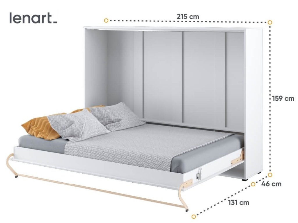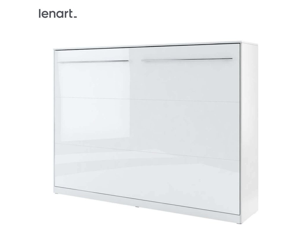 Široká výklopná postel 140 bílá lesk/bílá mat. Korpus nábytku je v matné bílé barvě, čelo nábytku je v bílém lesku. Rozměry viz obrázek. Každý kus nábytku v novém provedení Vám umožní dokonale zařídit menší ložnici nebo obývací, dětský či studentský pokoj. Se sklápěcí postelí Vás už nebude trápit malý prostor Vaší domácnosti. Díky stabilní konstrukci zaručuje pohodlný odpočinek. Bezpečnost je velmi důležitá a tak má naše sklápěcí postel mechanismus, kterým zablokujete postel proti samovolnému otevření. Při sklápění postele FUNKCE STOP zajistí bezpečné otevírání i zavírání. Tento výjimečný systém Vám umožní manipulaci pouze jedním prstem. Když je postel sklopená, vypadá jako běžná komoda. Vyklopením se vytáhne celá šířka postele. Při rozložení postele má hloubku 177 cm. Rám je nutno přišroubovat ke zdi, nosnost postele je 200 kg. Rošt postele je v ceně, matrace není součástí, je potřeba ji dokoupit. Doporučujeme velikost 140 x 200 x výšku do 18 cm. Po sklopení postele vzniká prostor pod postelí o výšce 20,4 cm. Nábytek je vyroben z kvalitního lamina s ABS hranou. Lamino je odolné proti poškrábání, poškození, vlhkosti a vysokým teplotám. Postel nabízíme v několika velikostech a barevných provedeních. Dodáváme v demontovaném stavu. Můžete si prohlédnout prezentační video, klikněte ZDE.Doplňkové parametry