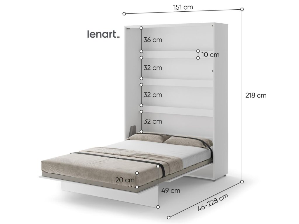 šířka: 153 cm | výška: 217 cm | hloubka: 46-237 cm Vysoká výklopná postel 140 bílá mat. Rozměry viz obrázek. Každý kus nábytku v novém provedení Vám umožní dokonale zařídit...