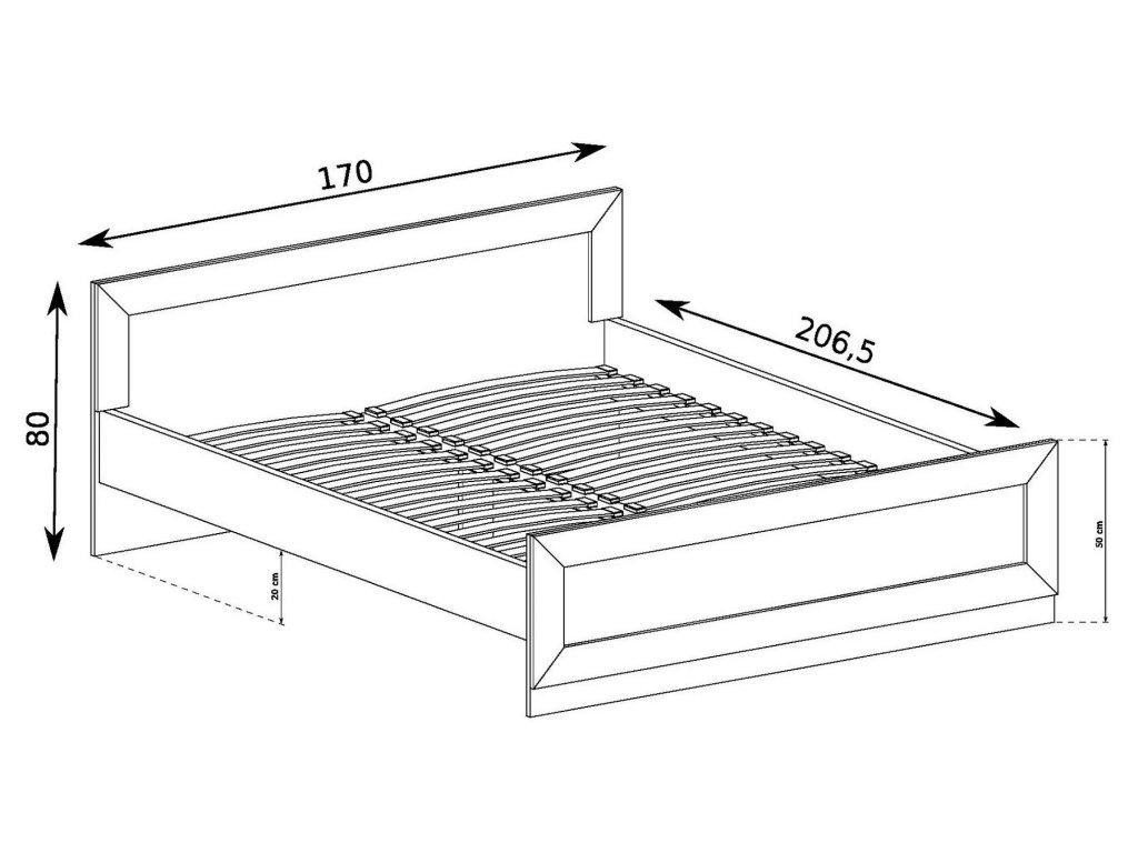 šířka: 170 cm | výška: 95 cm | hloubka: 205,2 cm Postel je vyrobena z kvalitní LTD desky tl. 16 mm v barvě dub sonoma. Rámový rošt a matraci je nutno doobjednat. Vhodný rozměr...