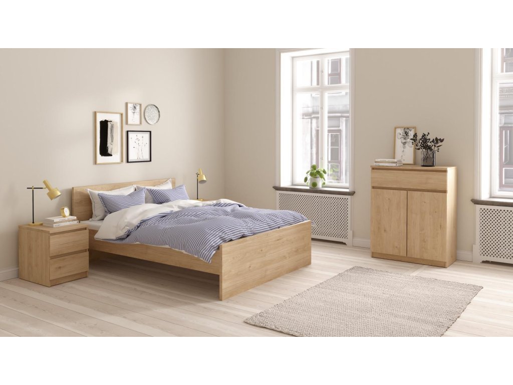 Postel Simplicity je vyrobená v jednoduchém a nadčasovém skandinávském stylu. Má rovné a čisté linie, které vytvoří útulný, pohodový a příjemný interiér. Plocha pro spaní je 160x200 cm a nabízíme ji v několika dekorech. Postel je dodávaná v demontu BEZ ROŠTU A MATRACÍ. K posteli doporučujeme dokoupit noční stolky, komodu nebo skříň ve stejném designu, které také najdete v naší nabíce. Součástí postele je montážní návod včetně všech spojovacích prvků. Vyobrazené dekorace nejsou v ceně.