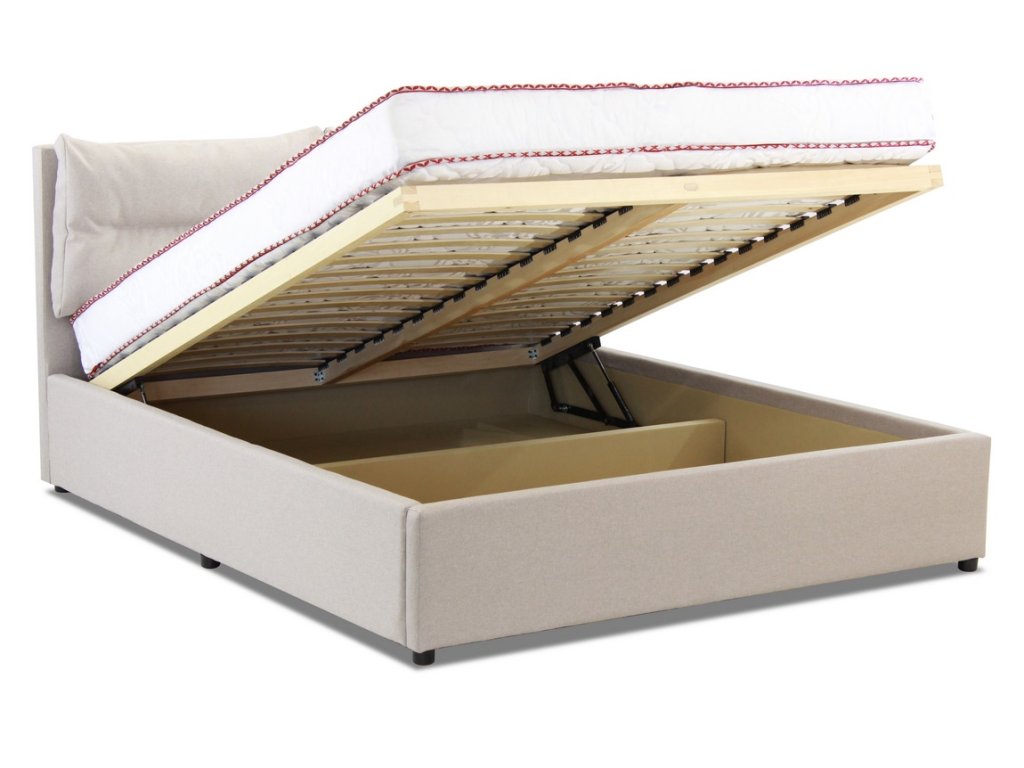 Elegantní čalouněná postel v moderním vzhledu s praktickým úložným prostorem. Úložný prostor se nachází pod zvedacím lamelovým roštem, který je v ceně. Matraci je potřeba doobjednat, vhodný rozměr je 160 x 200 cm. Barevné provedení - látka Malmo 08 (mléčná káva) dle vyobrazení na obrázku. Dodáváme v demontovaném stavu.Doplňkové parametry