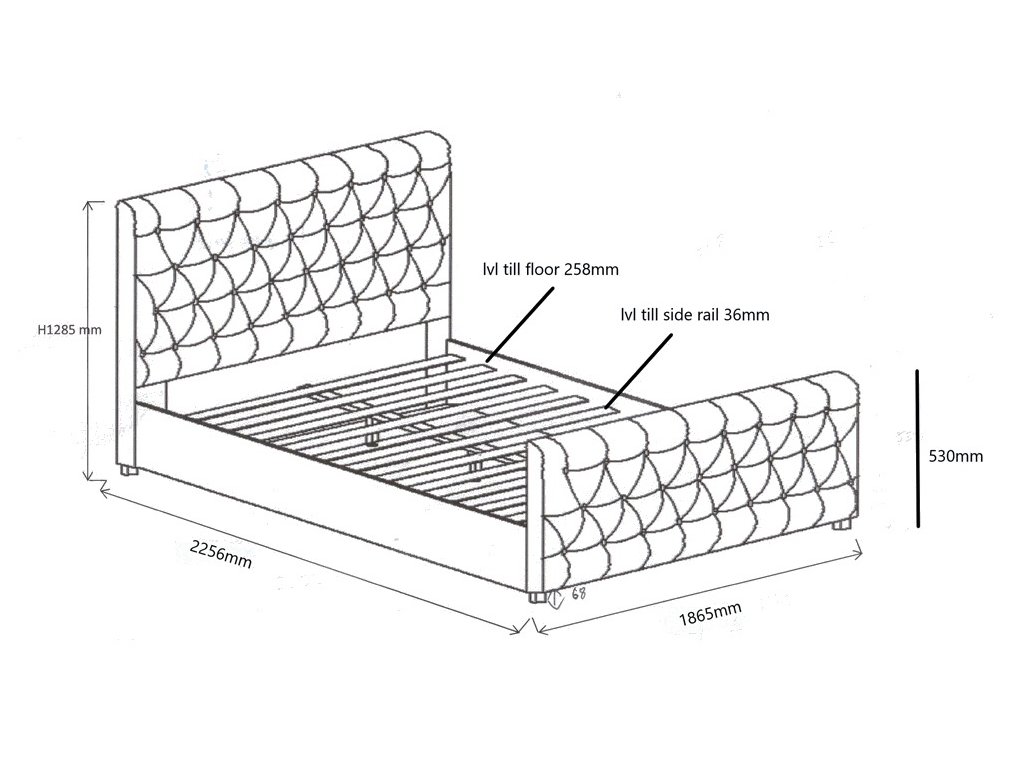 Elegantní postel originálního vzhledu s výrazným prošívaným vysokým čelem. Konstrukce je potažena krásnou modrou látkou. Nožky postele jsou v barvě tmavý ořech a mají výšku 6,8 cm. Rošt je v ceně, ale matrace je třeba doobjednat. Vhodný rozměr 180 x 200 cm. Dodáváme v demontovaném stavu.Doplňkové parametry