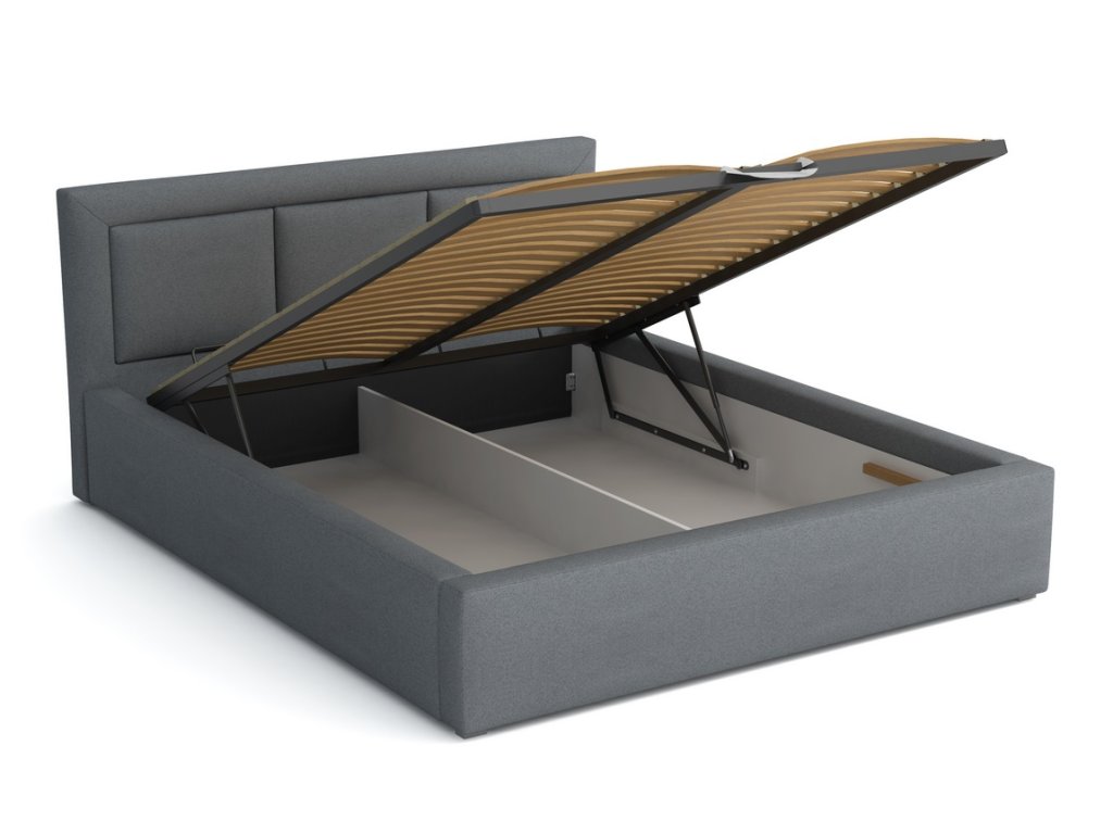 Elegantní postel s vysokým prošitým čalouněným čelem. Konstrukce je potažena látkou ve světle šedé barvě. Nožky jsou plastové v šedé barvě. Rošt je v ceně, ale matrace je potřeba doobjednat, vhodný rozměr 180 x 200 cm nebo 2 x matrace 90 x 200 cm. Za příplatek je možné objednat postel s kovovým zvedacím roštem, tím vznikne pod ložnou plochou úložný prostor. Cena za postel s kovovým roštem na vyžádaní. Změnu roštu je nutné zadat při první objednávce. Výška bočnice od země je 34 cm, výška roštu od země je cca 24 cm. Dodáváme v demontovaném stavu.Doplňkové parametry