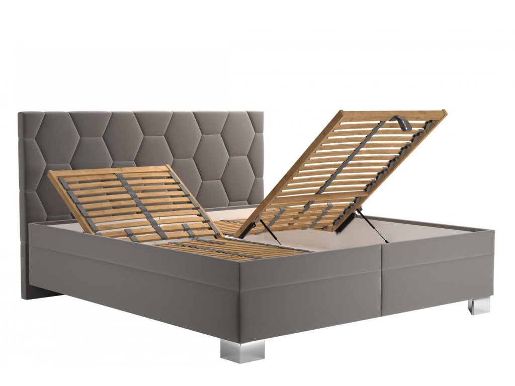šířka: 199,5 cm | výška: 114,5/40,5 cm | hloubka: 212 cm Elegantní postel originálního vzhledu s netradičním vysokým prošívaným čelem. Konstrukce je potažena látkou šedého...