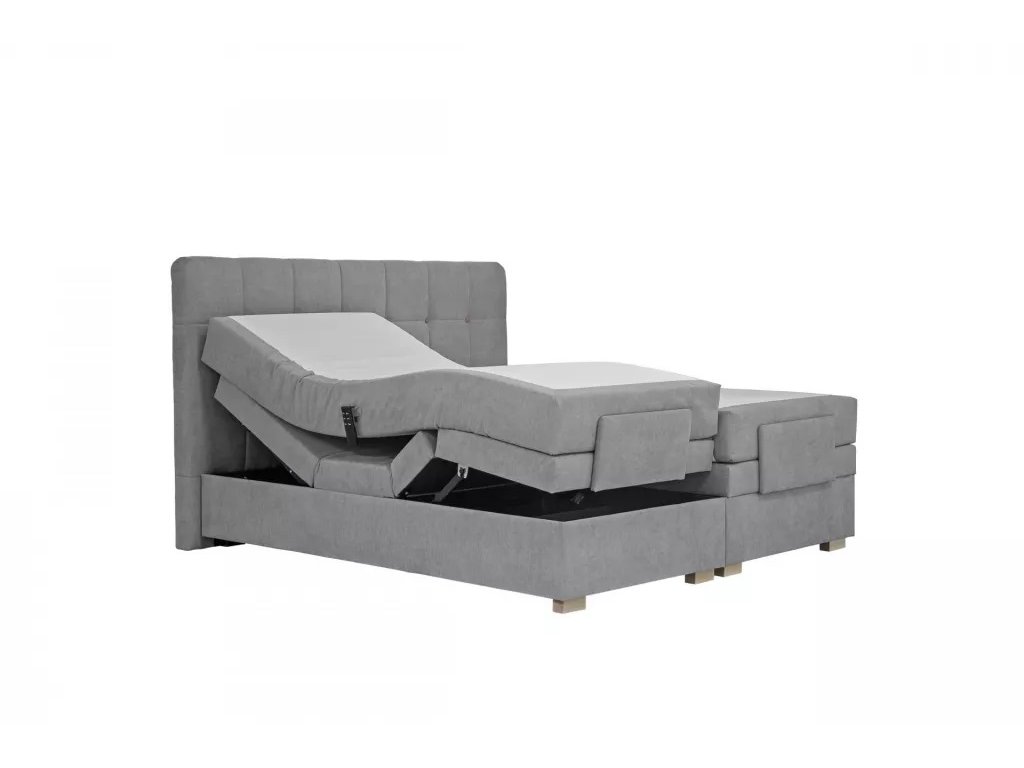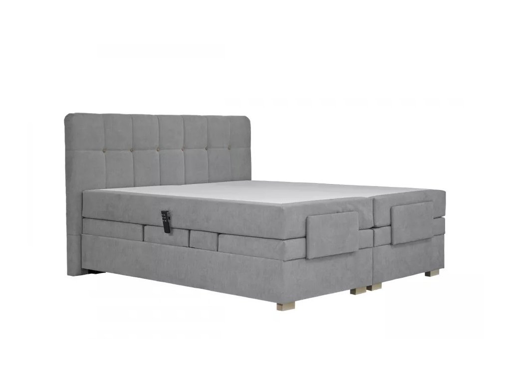 Luxusní motorový boxspring Samael je možno polohovat za pomoci bezdrátového ovladače. V čele postele jsou ve vtazích upevněny knoflíky. První vrstvou postele je jádro tvořené taštičkovými pružinami, které je uloženo uvnitř boxu, který u lůžek typu boxspring nahrazuje lamelový rošt. Vysoké množství malých pružin je samostatně uloženo v textilních taštičkách, které zajišťují výborné kopírování těla uživatele Tento podklad matrace dokáže bodově lépe reagovat než většina lamelových roštů. Druhou vrstvou jsou volně ložené matrace tvořené jádrem z taštičkových pružin, které jsou vhodné pro postele typu boxspring. Jádro se skládá z vysokého množství malých pružin samostatně uložených v textilních taštičkách, které zajišťují výborné kopírování těla uživatele. Rozložení a množství pružin totiž podepírá páteř lépe než běžné pružinové matrace. Boky matrace jsou očalouněné v kvalitní potahové látce . Celková výška matrace v potahu je 18 cm. Postel bude dodána v potahové látce, která je vyobrazena na druhé fotografii.