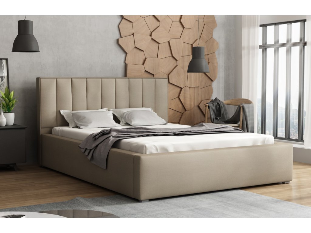 Elegantní postel s vysokým prošívaným čalouněným čelem. Nožky jsou plastové v šedé barvě. Rošt je v ceně, ale matrace je potřeba doobjednat. Vhodný rozměr matrace je 200 x 200 cm. Za příplatek je možné objednat postel s kovovým zvedacím roštem, tím vznikne pod ložnou plochou úložný prostor. Cena za postel s kovovým roštem na vyžádaní. Změnu roštu je nutné zadat při první objednávce. Výška bočnice od země je 34 cm, výška roštu od země je cca 24 cm. Dodáváme v demontovaném stavu.Doplňkové parametry