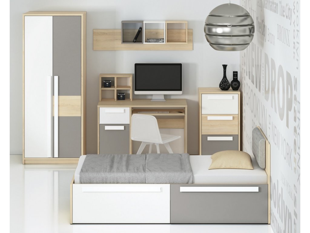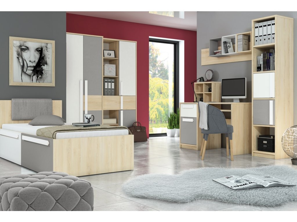 Sestava do dětského pokoje v moderním provedení. Korpus je vyroben z kvalitní desky LTD hraněné ABS páskou v barvě buk fjord, dvířka jsou vyrobeny z desky LTD v kombinaci barev...