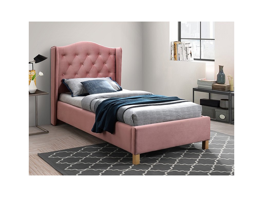 Čalouněná postel originálního vzhledu s prošíváním bude jako královská lóže pro ty, co si potrpí na styl a eleganci. Konstrukce je potažena látkou aksamit starorůžové barvy, nožky jsou ze dřeva v barvě dub vysoké 10 cm. Rošt je součástí postele ( klasický lamelový rošt v plastových pouzdrech ). Matraci nutno doobjednat o rozměrech 90 x 200 cm. Dodáváme v demontovaném stavu.Doplňkové parametry