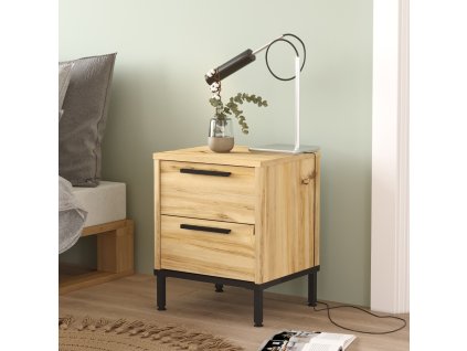 šířka: 45 cm | výška: 49,5 cm | hloubka: 43 cm Noční stolek se dvěma zásuvkami je vyroben z LTD desky odolné vůči poškrábání, korpus je v barvě dub sonoma a čela zásuvek jsou v...