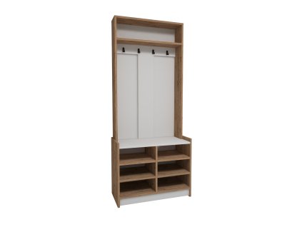 šířka: 120 cm | výška: 200 cm | hloubka: 30 cm Předsíňová stěna vyrobená z kvalitní laminátové desky ( zadní panel HDF ) v barevném provedení dub artisan/bílá. Sestava se skládá...