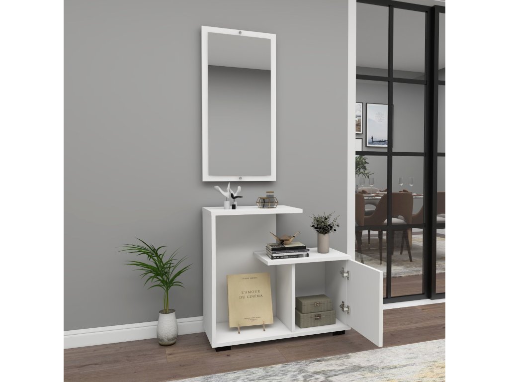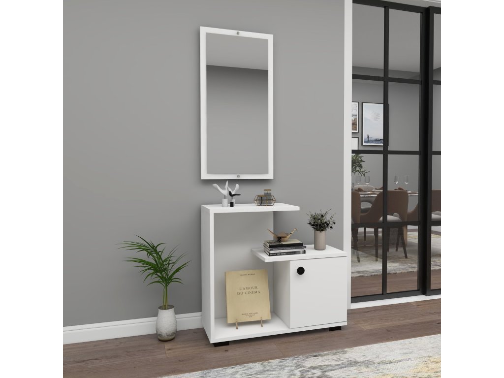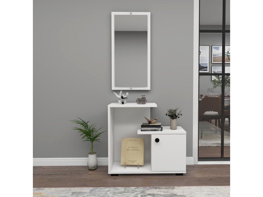 KILKIS předsíňový stolek se zrcadlem, bílá