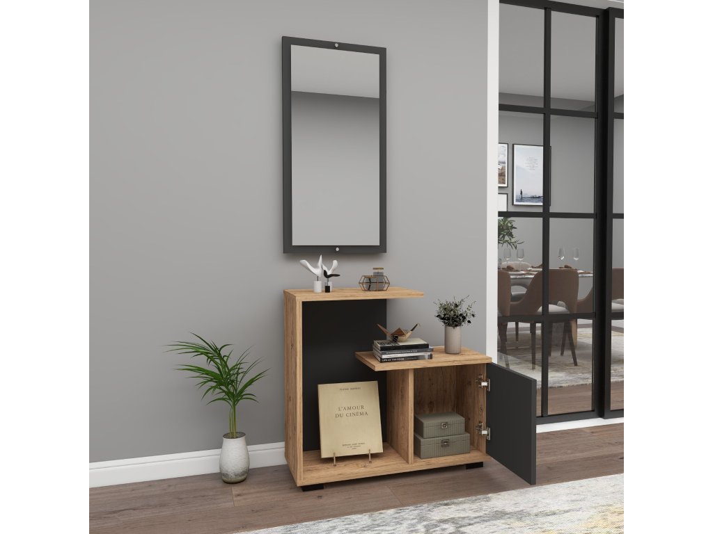 KILKIS předsíňový stolek se zrcadlem, borovice Atlantic / antracit