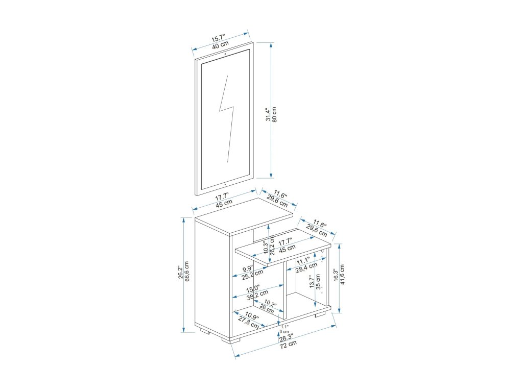 Stolek je ideální řešení pro uspořádání vaší předsíně. Tento moderní a funkční odkládací stolek nabízí praktické vybavení v podobě plného dvířka, odkládací police a integrovaného zrcadla, které vám usnadní každodenní organizaci a dodá vaší předsíni stylový vzhled.