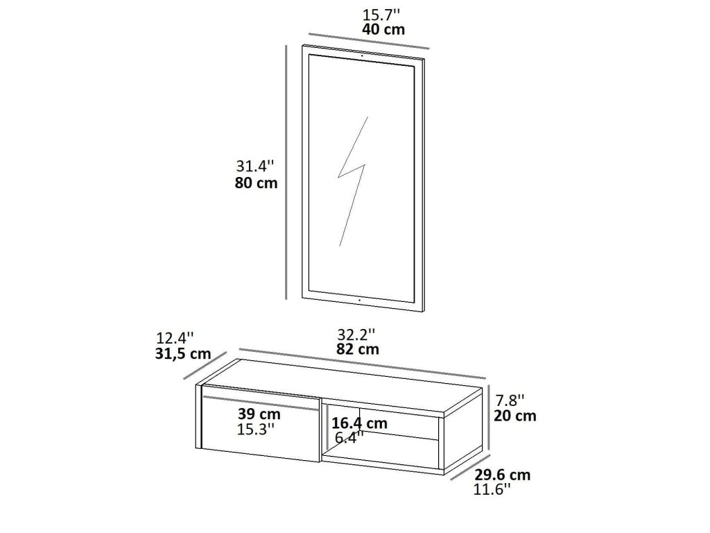 Stolek je ideálním řešením pro moderní předsíně, kde je potřeba kombinovat funkčnost s estetikou. Tento závěsný odkládací stolek nabízí praktické vybavení v podobě zásuvky, regálku a integrovaného zrcadla. Je navržen tak, aby šetřil prostor a zároveň poskytoval pohodlné místo pro odkládání drobností.