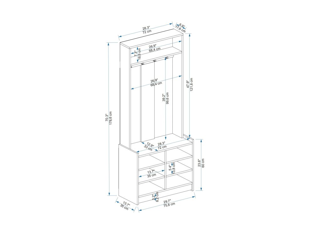 - Rozměry: 178.6 x 75.6 x 35 cm